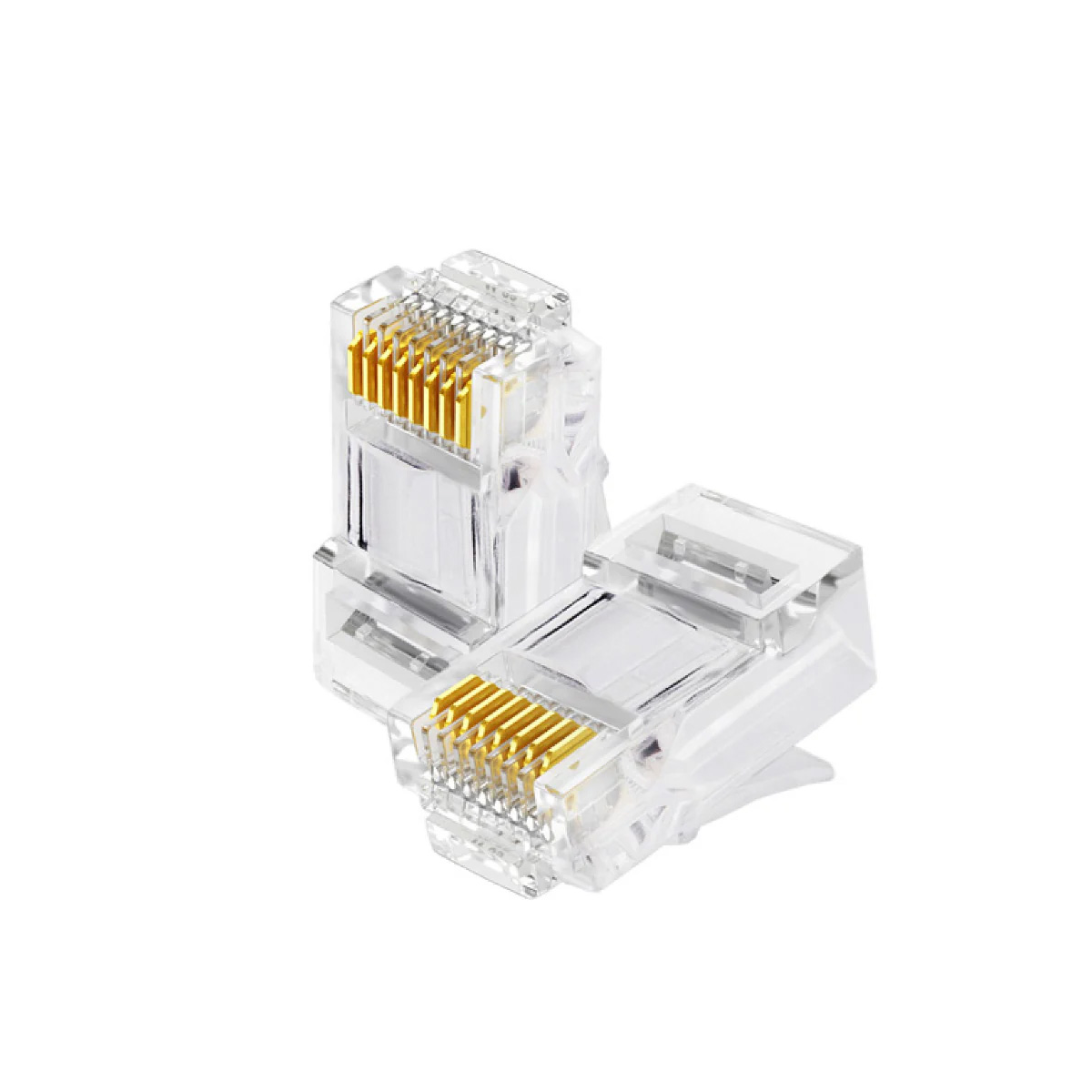 Los conectores macho RJ45 Cat5e son componentes modulares ideales para construir cables de red (ethernet) de longitud personalizada. Cuenta con ocho pines metálicos que se crimpan a los pares trenzados del cable UTP de categoría 5e, asegurando una transmisión de hasta 1 Gbps.